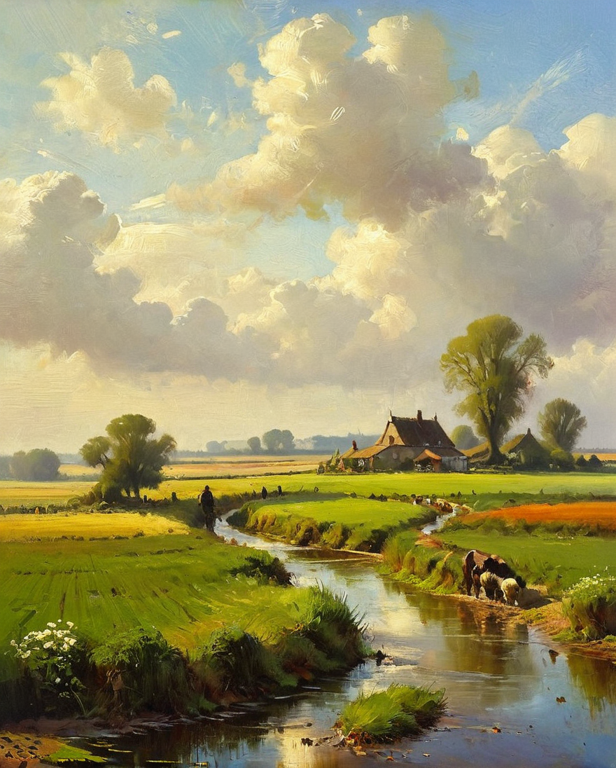 by Marc Simonetti, oil painting of a landscape of a Lively Authentic Polder, Smoky Conditions, L USM, attractive, concept art, cute, <lora:ClassipeintXL2.1:1>