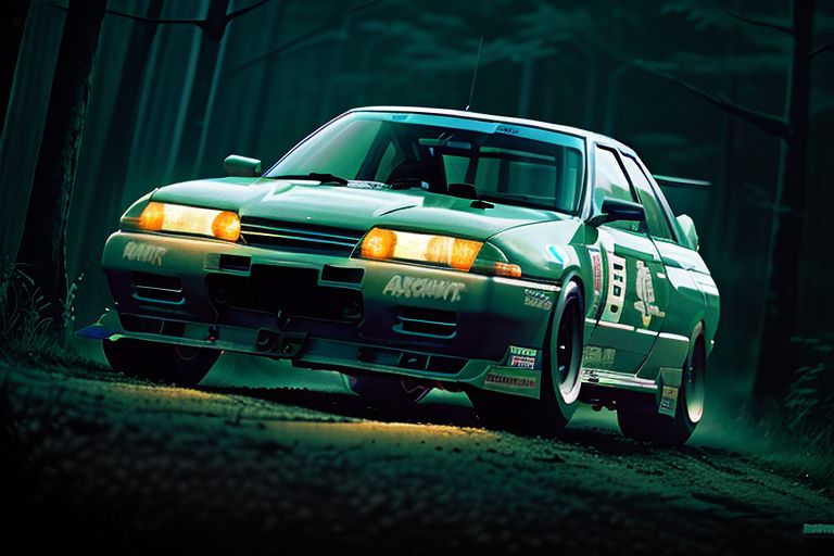 Highly detailed, Beautifully nightmarish kandagawa forest touge at night.