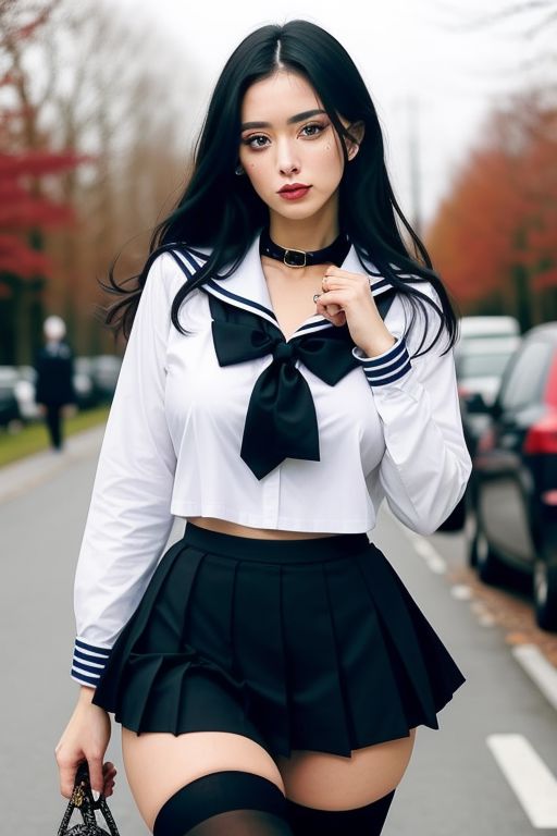 score_9,score_8_up,score_7_up,score_6_up,score_5_up,score_4_up ,<lora:aesthetic_witchy:0.3>,witchyaesthetic,realistic,blurry background, hell, between breasts, comfortable, <lora:SwitchchanXLPD:0.8>, Switchchan,heterochromia,sailor collar,sleeves past wrists,sleeves past fingers,school uniform,shirt,serafuku,black thighhighs,, <lora:SadeXL_v1.8:0.8>,