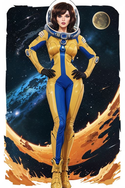 <lora:Bwood:0.5>, 2d artwork , a gorgeous space-woman, seductive pose, space suit, breathtaking space background,