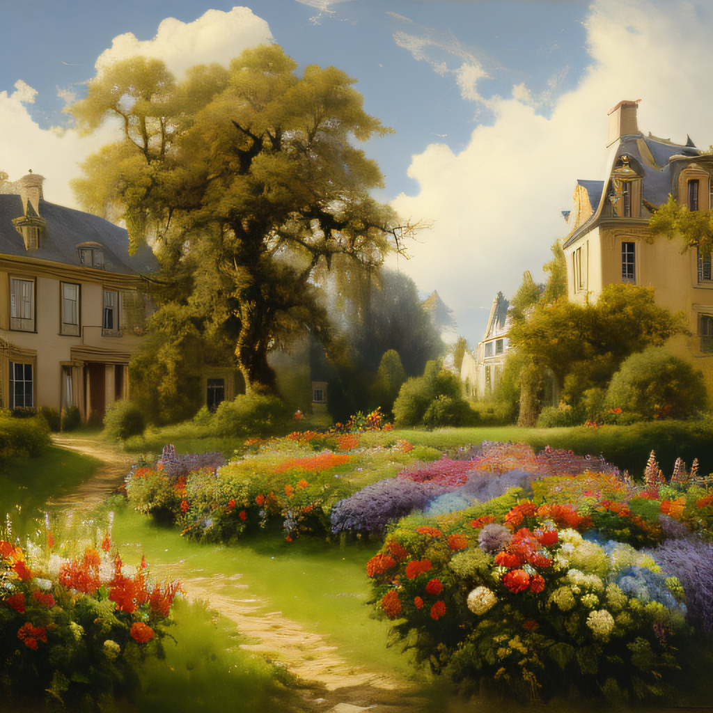 albert_bierstadt, a painting of a garden of colorful flowers, Victorian manor in background, nimbus clouds, landscape <lora:Albert_Bierstadt:1>