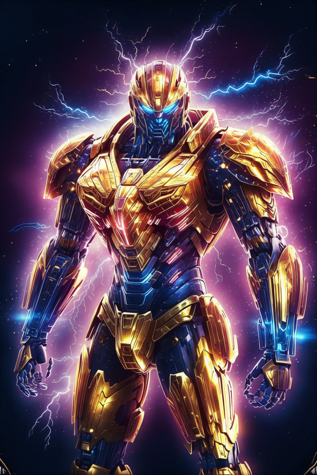 Best quality, masterpiece, ultra high res, (photorealistic:1.4),<lora:shanyaogaoda:0.7>,shanyaogaoda, neonlight\(ttp\), mecha, no humans, solo, <lora:Neonpunkai-8:0.2> ,Neonpunkai, <lora:neonlight_V1_loha:0.2>,gold foil,gold leaf art,glitter drawing,thunderstyle <lora:thunder_model:0.9>,