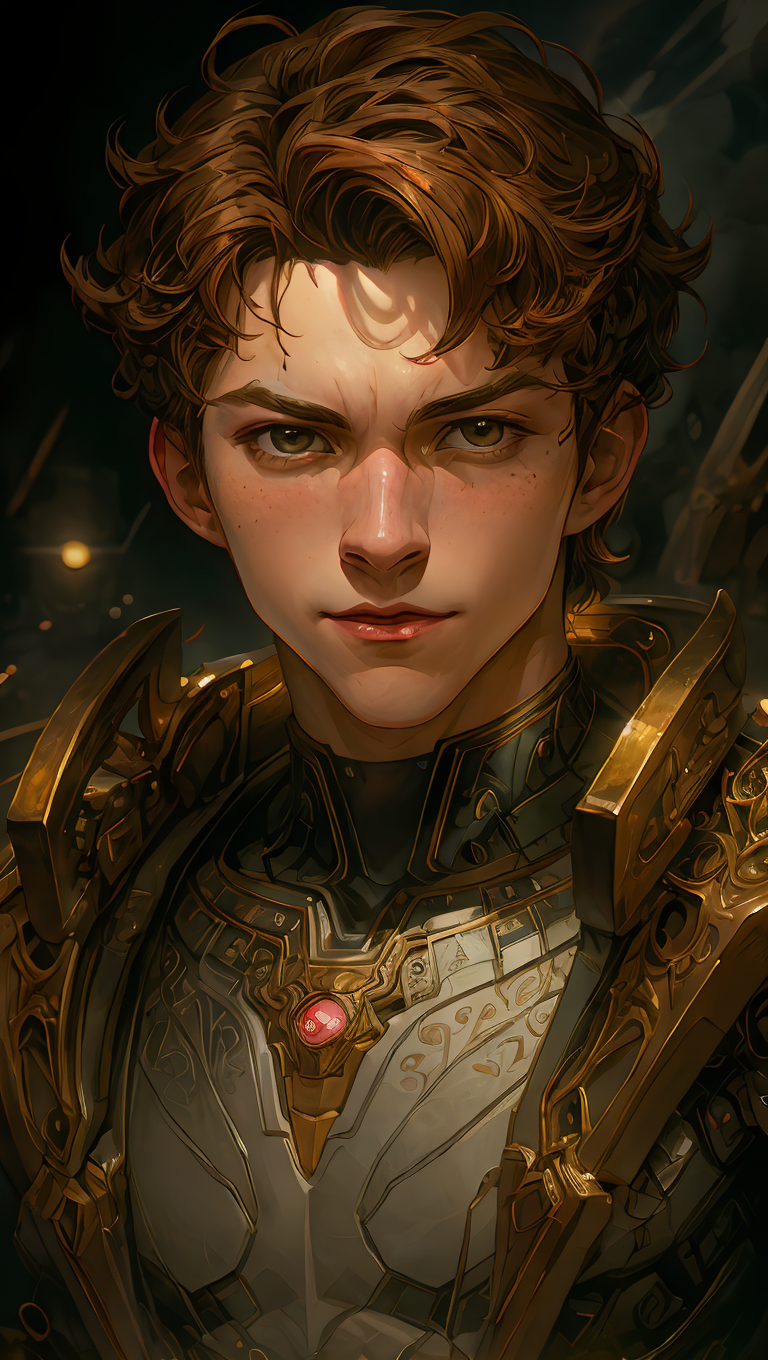 (8k portrait of handsome male cyborg with short hair:1.1), muscle boy, intricate, elegant, highly detailed, majestic, digital photography, art by artgerm and ruan jia and greg rutkowski surreal painting (gold filigree), (masterpiece), sidelighting, (finely detailed beautiful brown_eyes:0.8), hdr, (colorful and vibrant:1.2), mystical colors, <lora:add_detail:0.4> <lora:detailed_eye:0.6> <lora:tom-holland-spiderman:0.8> <lora:JamesDoane:0.8> <lora:OC illustration:0.4> <lora:t3xtn:0.3>abstract background,