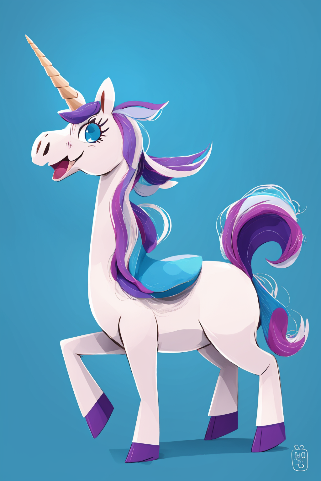 fant, antonella fant, solo, smile, open mouth, blue eyes, full body, :d, signature, pokemon (creature), no humans, unicorn, <lora:antonellafant-04:0.95>