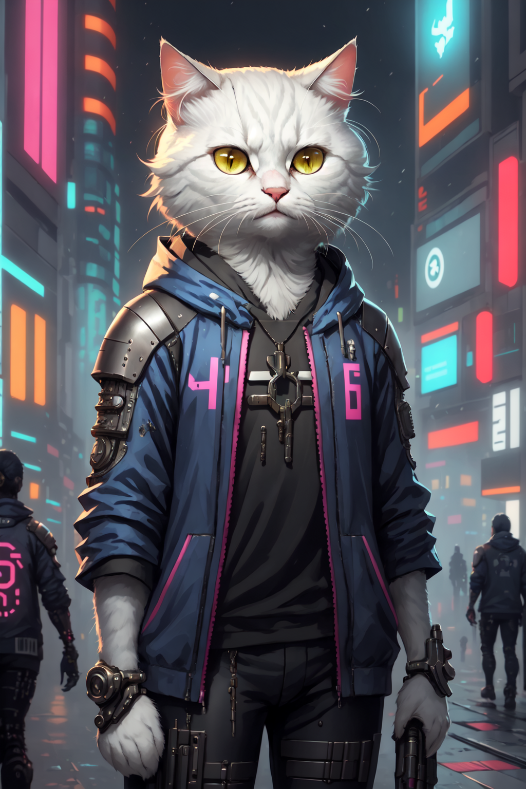 <lora:cat-000008:0.8> portrait, white c4ttitude, cyberpunk