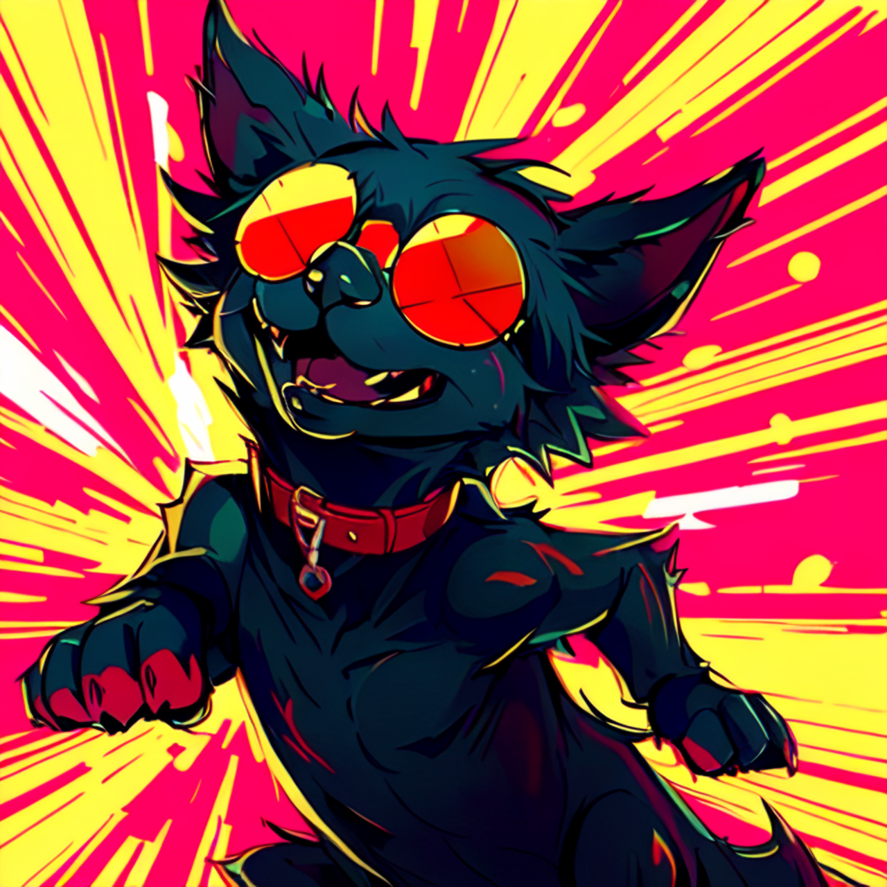<lora:EyestrainColors:0.9>, EyestrainColors, realistic, detailed, painting of a dog wearing sunglasses, dynamic pose, dynamic angle, red and black