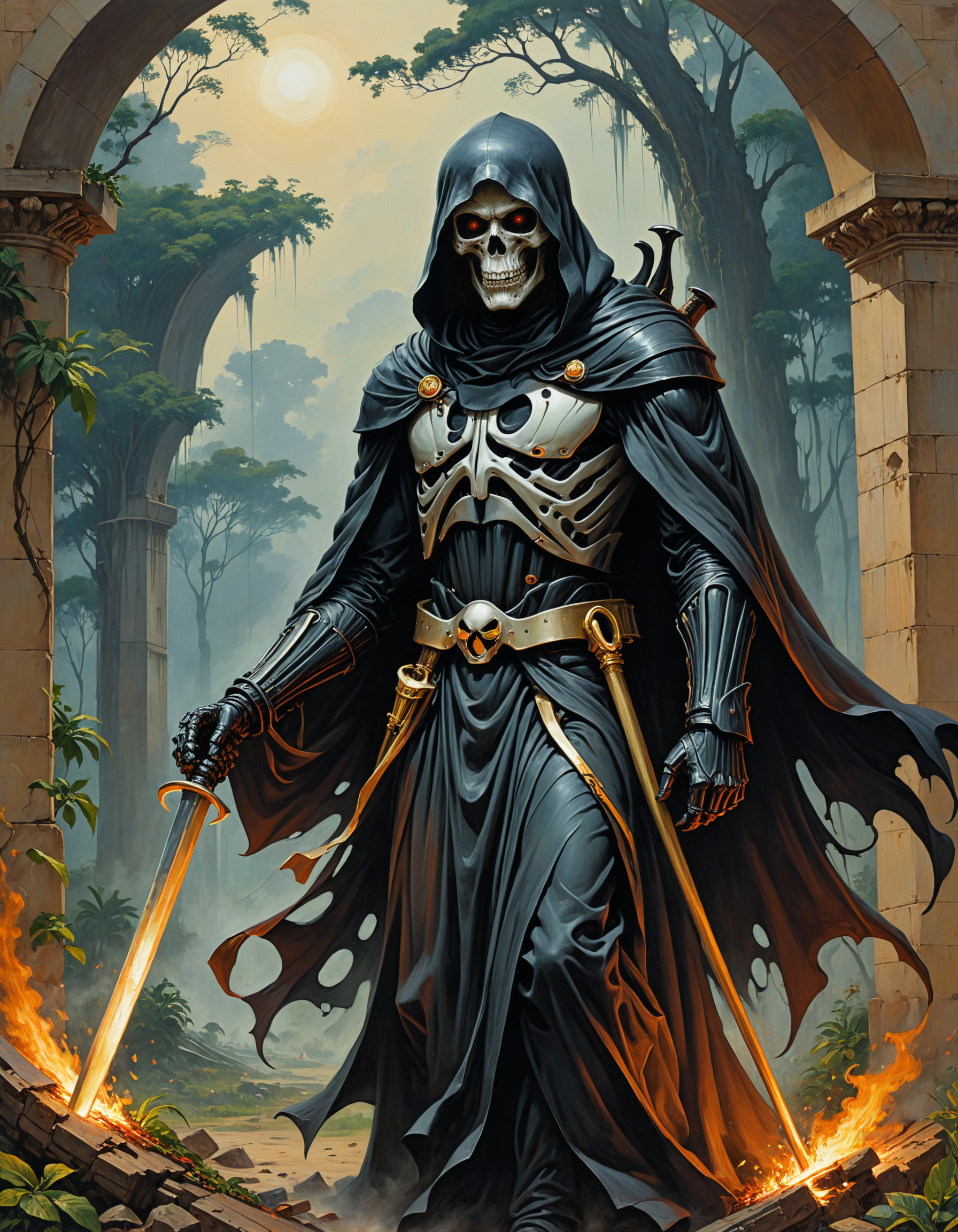 [by Gaston Bussière: by Oscar Niemeyer: 0.4], The Grim Reaper <lora:xl_more_art-full_v1:0.5> <lora:add-detail-xl:0.7>