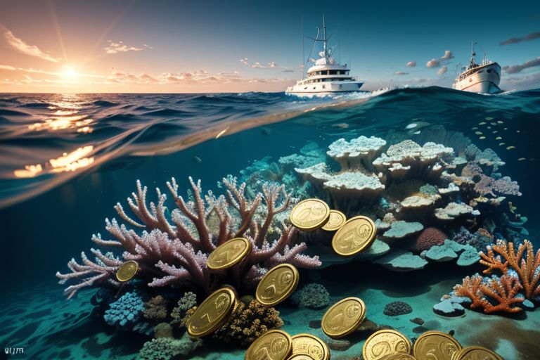 Incredibly Realistic Background, background, very realistic atmosphere, best high quality texture, hyper detailed, ultra detailed, super realistic (best high quality:1.2), absurd resolution, 8k, HDR, ultra detailed, ((photorealistic)), professional light, cinematic lighting, fashion photography, ambient lighting, boat sinking in the ocean, swathes of sun crossing the seabed, slightly rough sea, lots of gold coins in the seabed, corals, fish, sharks around the boat, blur background