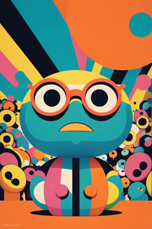 fantasy,((1boy)),round orange glasses,pop art poster,kitsch,symmetrical representation,(Jon Burgerman,stephen ormandy,stephen ormandy,Gemma Correll),abstract background,bold lines,hyper detailed,intricate,poster,artstation,Cinematic Lighting,