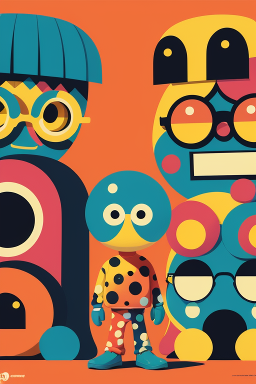 fantasy,((1boy)),round orange glasses,pop art poster,kitsch,symmetrical representation,(Jon Burgerman,stephen ormandy,stephen ormandy,Gemma Correll),abstract background,bold lines,hyper detailed,intricate,poster,artstation,Cinematic Lighting,