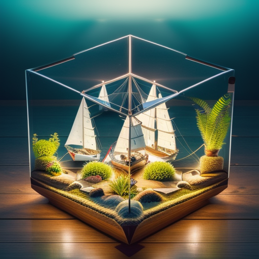 A sailboat gliding across a tranquil bay, <lora:Just_In_Case:1>, terrarium