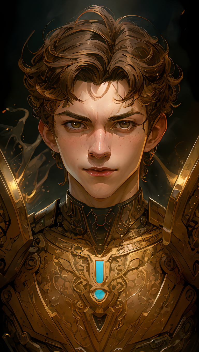 (8k portrait of handsome male cyborg with short hair:1.1), muscle boy, intricate, elegant, highly detailed, majestic, digital photography, art by artgerm and ruan jia and greg rutkowski surreal painting (gold filigree), (masterpiece), sidelighting, (finely detailed beautiful brown_eyes:0.8), hdr, (colorful and vibrant:1.2), mystical colors, <lora:add_detail:0.4> <lora:detailed_eye:0.6> <lora:tom-holland-spiderman:0.8> <lora:JamesDoane:0.8> <lora:OC illustration:0.4> <lora:t3xtn:0.3>abstract background,