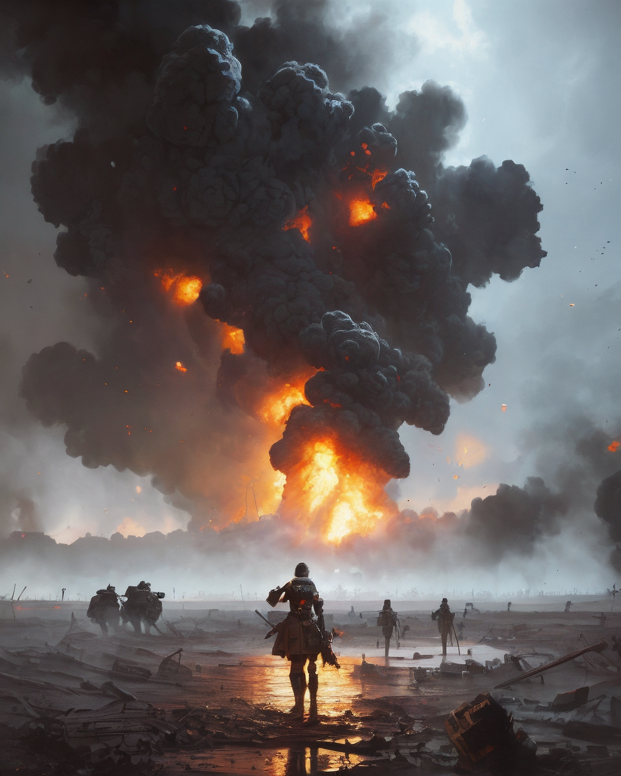 Masterful painting of 1girl standing on a ravaged battlefield and shouting orders at soldiers, (adepta sororitas), sky full of explosions behind her, warhammer 40k, black armor, symmetric eyes, explosions, smoke in the background, death, danger, mud, projectiles, Passchendaele , Ypres, Verdun, craters, mud, shrapnel, dry brush, Beksinski, Yerka, Giger, Moebius, Escher, John Blanche vibrant colors, highly detailed, intricate, oil on canvas, <lora:WH40KSisters_V2rank8:1>