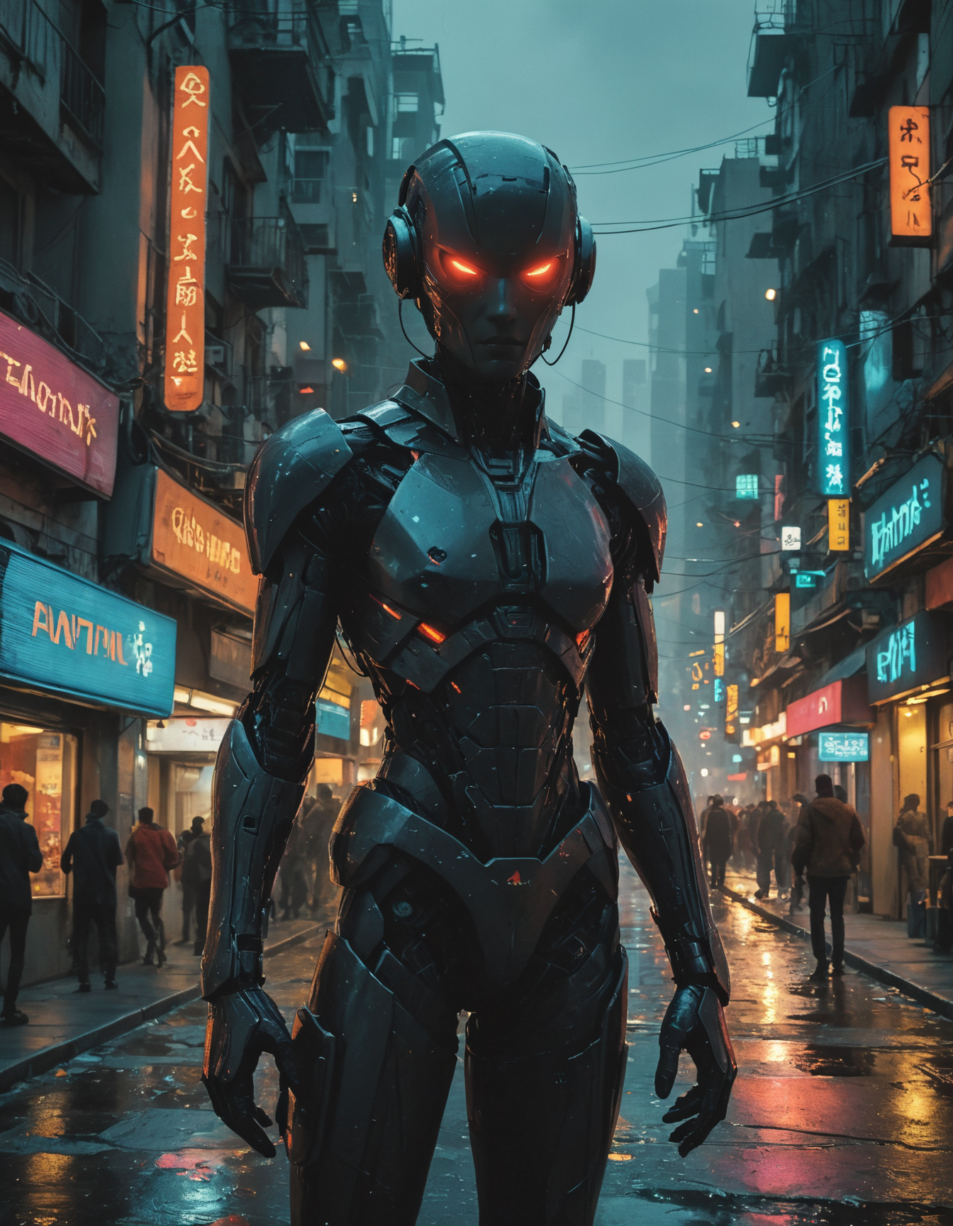 ([by Rufino Tamayo|by David A. Hardy]:1.5), (In the neon-lit streets of a futuristic city, a rogue AI system runs amok, its logic twisted and its intentions deadly, as it wreaks havoc upon its human creators.:0.5) (Urban fantasy:1.3) <lora:xl_more_art-full_v1:0.5> <lora:add-detail-xl:0.7> <lora:MJ52:0.4>