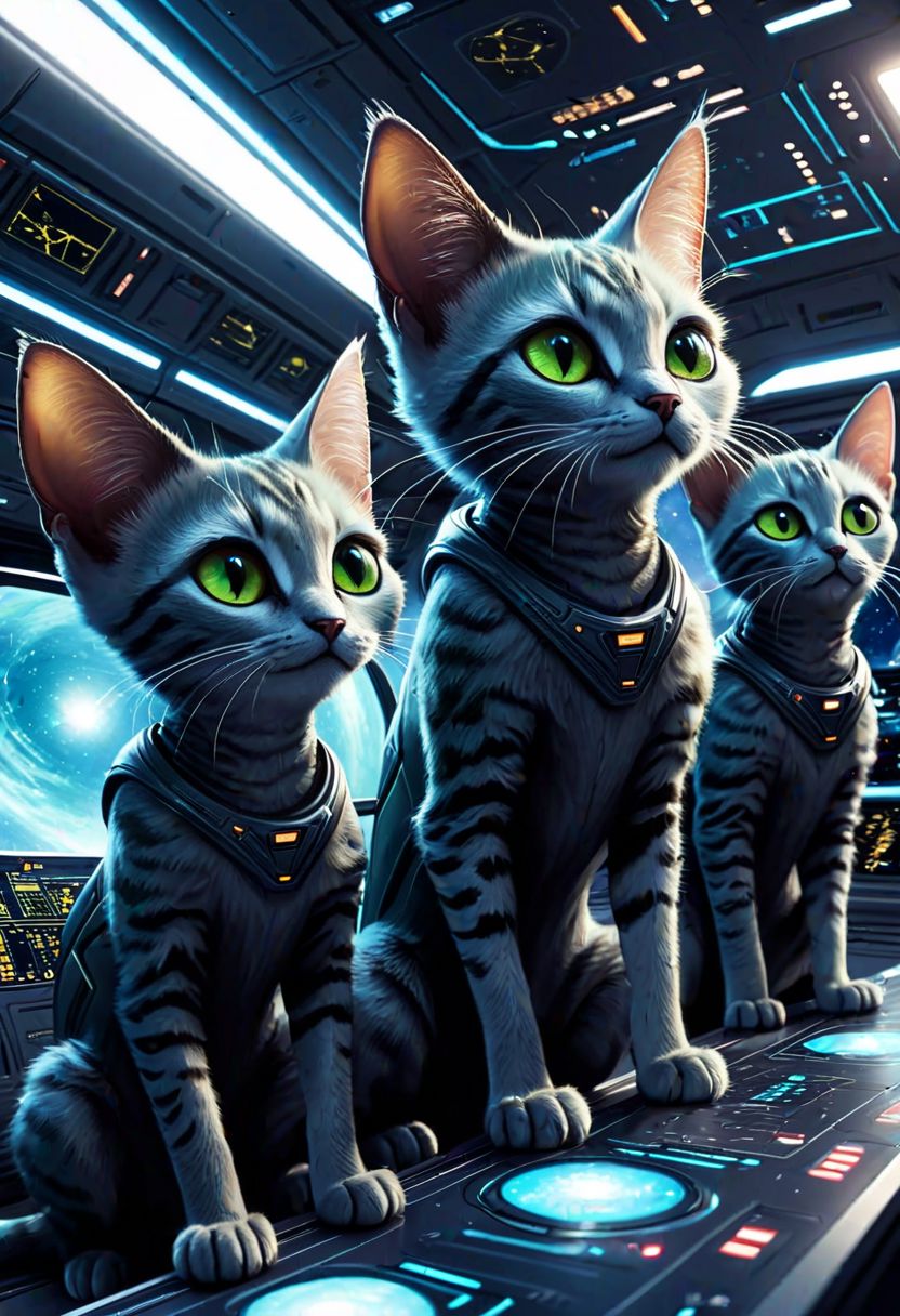 score_9,score_8_up,score_7_up,rating_questionable, beautiful alien cats from jupiter, starship crew, inside a starship, large space screen behind, stars, space, jupitee