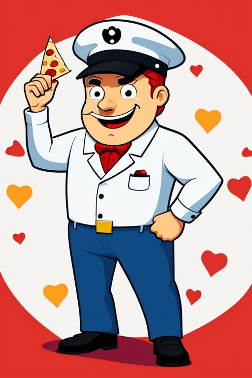 Create a vector art graphic of an appetizing slice of white pizza cartoon man titled "White pizza cartoon ma is my love language", add NO text at all. The cartoon pizza man is smiling,