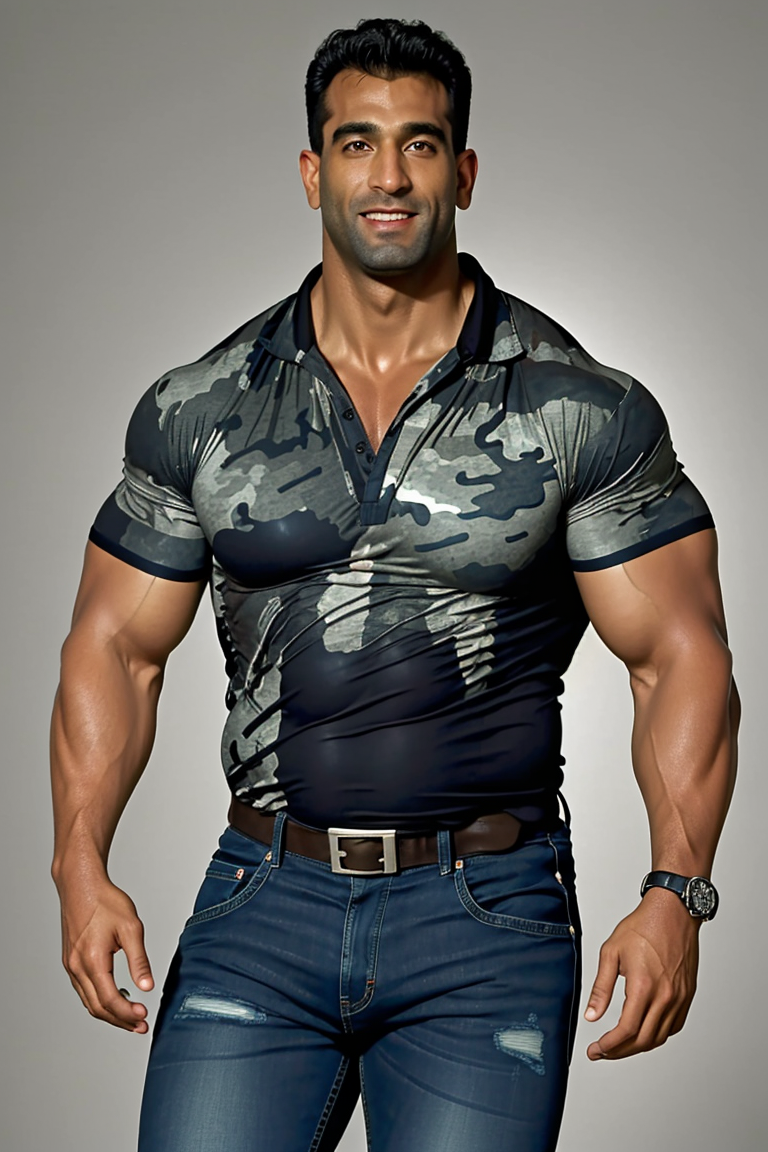 (RAW photo), <lora:YusefTrueLies:0.9>, yuseftruelies, muscular, standing, camouflage shirt , <lora:backlight_slider_v10:1>, jeans