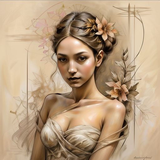 oil painting, figure drawing , sketch oil painting a beautiful lady, short light brown hair, creative hairdo, beautiful hazel green eyes, imaginative use of floral patterns, she is very creative and a sensitive soul, a muse, vulnerable, fashion shoot, intricate details, , dynamic play of light, deep darks, rich emotive colors, dust particles caught in the light, textured 3D oil painting, Compression artifacts, bad art, worst quality, low quality, plastic, fake, bad limbs, conjoined, featureless, bad features, incorrect objects, watermark, signature, logo