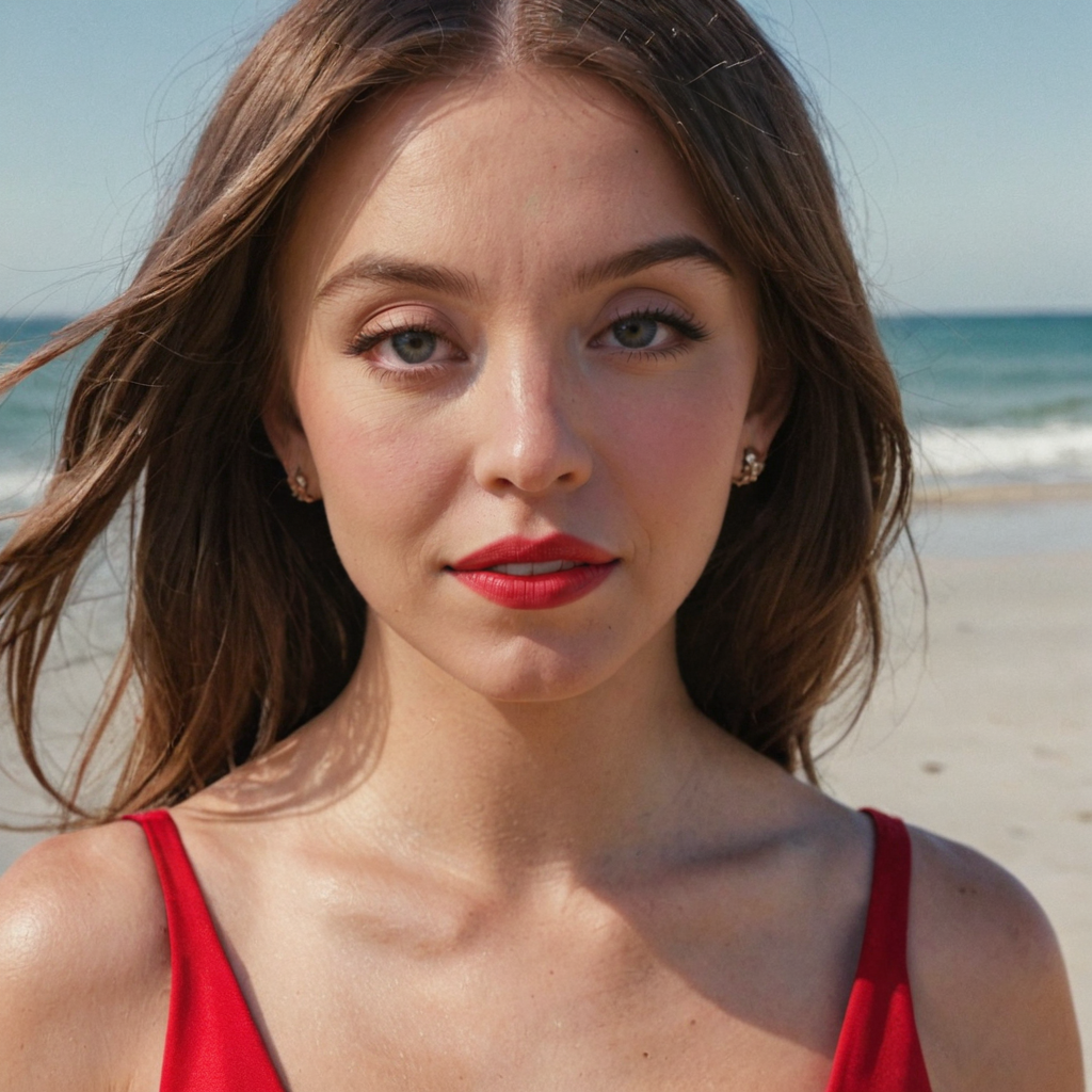 close-up photo of a woman, wearing a red dress, at a beach, <lora:sydsweeney_xl_1_standard_wo_cap-000028_0.2+sydsweeney_xl_1_standard_wo_cap-000046_0.3+sydsweeney_xl_1_standard_wo_cap-000087_0.5:1>
