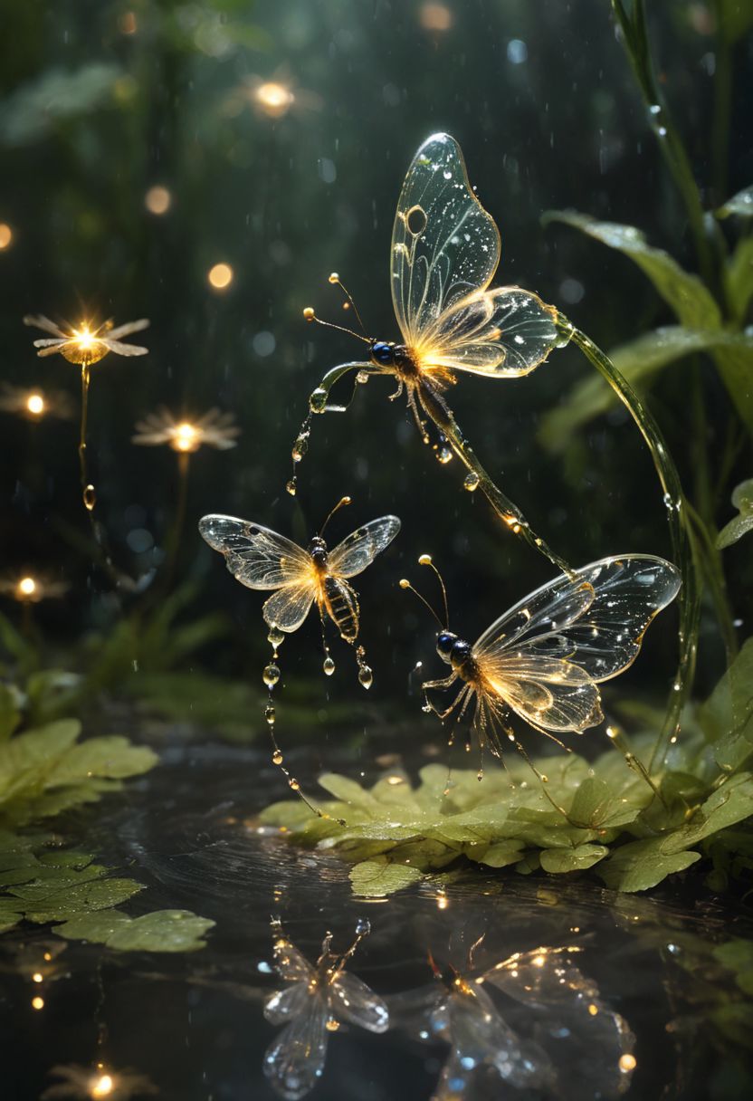 high quality, highly detailed, 8K Ultra HD, ral-elctryzt water made skinny elegant butterfly made of water drops, In this enchanting artwork, the very essence of water drops transforms into ral-elctryzt firefly, each droplet gracefully adorning the wings of a firefly in flight, The translucence of the water captures the delicate beauty of the ral-elctryzt firefly, as if nature has granted fleeting wings to the liquid essence, The intricate patterns formed by these electric water made fireflies evoke a sense of enchantment, their ephemeral forms suspended in time, The play of light on their wings adds a touch of magic, turning ordinary droplets into a symphony of ral-elctryzt firefly, dancing in the realm where water meets whimsical flight, by yukisakura, awesome full color,