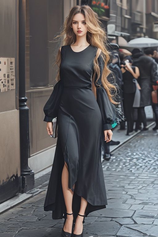 Long cool woman in a black dress