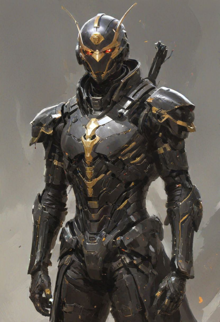 art by (Peter Mohrbacher,Bastien Lecouffe Deharme:1.3),heavy armored man,masterpiece,8k,trening on artstation and deviantart,alberto seveso, <lora:BenedickBanaXLStyle-000004:0.75>,bbana style,1man, solo, studio lighting, golden stroke young royal elegant assassin, a member of the League of Shadows, cuts a daunting figure with his enigmatic presence. Clad in a flowing black cloak adorned with intricate golden motifs and a touch of pristine white fur at the collar, he exudes an aura of sinister elegance. His mask, a striking blend of black and white with gilded trim, conceals his features, leaving only his piercing Crimson glowing eyes visible through the carefully crafted eye-holes. Dressed in a form-fitting black leather ensemble with golf accents and mamy throwing knives. His silver hair, a striking contrast against the darkness of his attire, hints at the wisdom and experience that belies his youthful visage. In his hand, he wields the Whispering Shadowblade, an obsidian-black dagger adorned with mesmerizing silver runes that seem to writhe and shift, imbued with an eerie, otherworldly allure. The weapon's curved, serpentine blade gleams with an ethereal sheen, a testament to its supernatural nature and the deadly precision it offers to its master. This enigmatic figure embodies the lethal prowess and uncanny finesse of the League of Shadows, a master of the shadows and a harbinger of silent, swift demise.menacing.