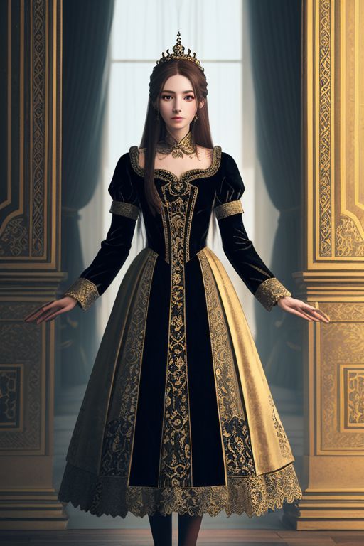 beautiful woman, long hair, lace and velvet dress, confident expression, palace room, dynamic, fantasy aesthetic, soft light, 8k,