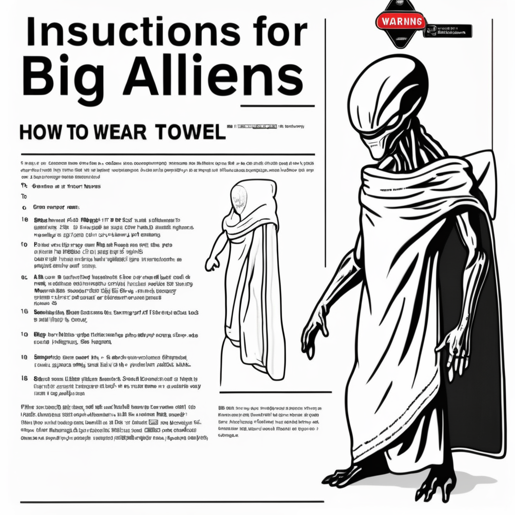 <lora:Do_Dont:1>instructions for (aliens:1.2) how to wear a towel, big alien, Ultimate Guide, Warning, Help, text dont , 8k high definition, highest quality, skin texture, masterpiece, best quality, perfect lighting, cinematic lighting, (sharp focus:1.2), HDR, beauty, ultra-detailed, amazing, eos