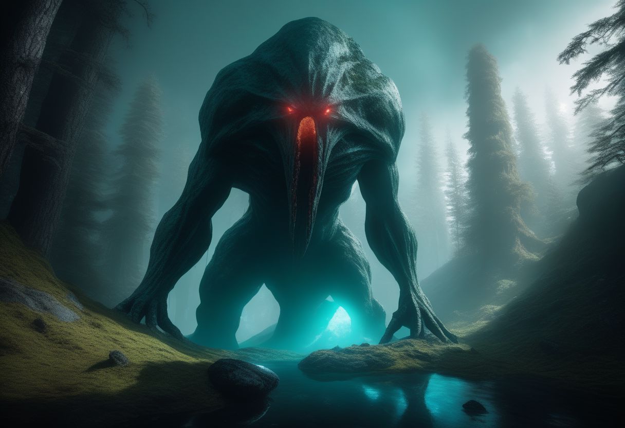 a stone monolith, a creature resembling a a transparent gelatinous slime monster is crawling across it from above, high resolution, high detail, bright lighting