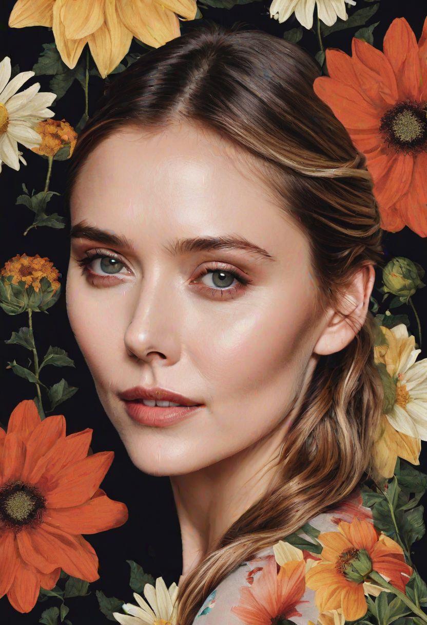 score_9, score_8_up, score_7_up, Elizabeth Olsen, beautiful flower, black background
