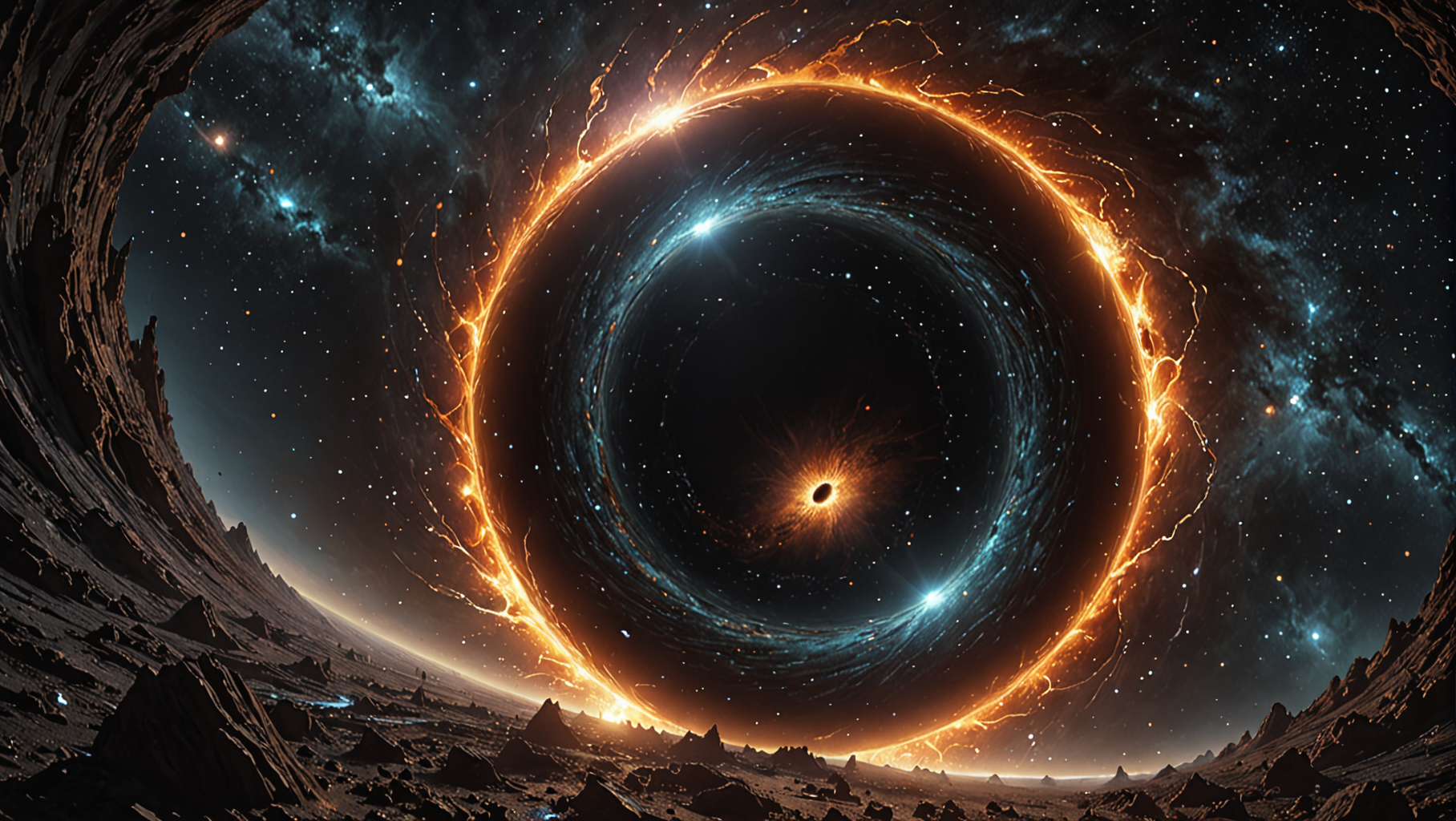black hole in the universe, great lighting, iridescence, intricate, elegant, lightrawing, highly detailed, digital painting, artstation, flat, matte painting, concept art, illustration, cinematic lighting, masterpiece, anamorph lens, <lora:Desolation:0.2> <lora:add-detail-xl:1>
