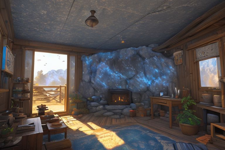 House with elements of colored, cold metal, rustic style, prehistoric rocks, video game, tribal fantasy, overwatch