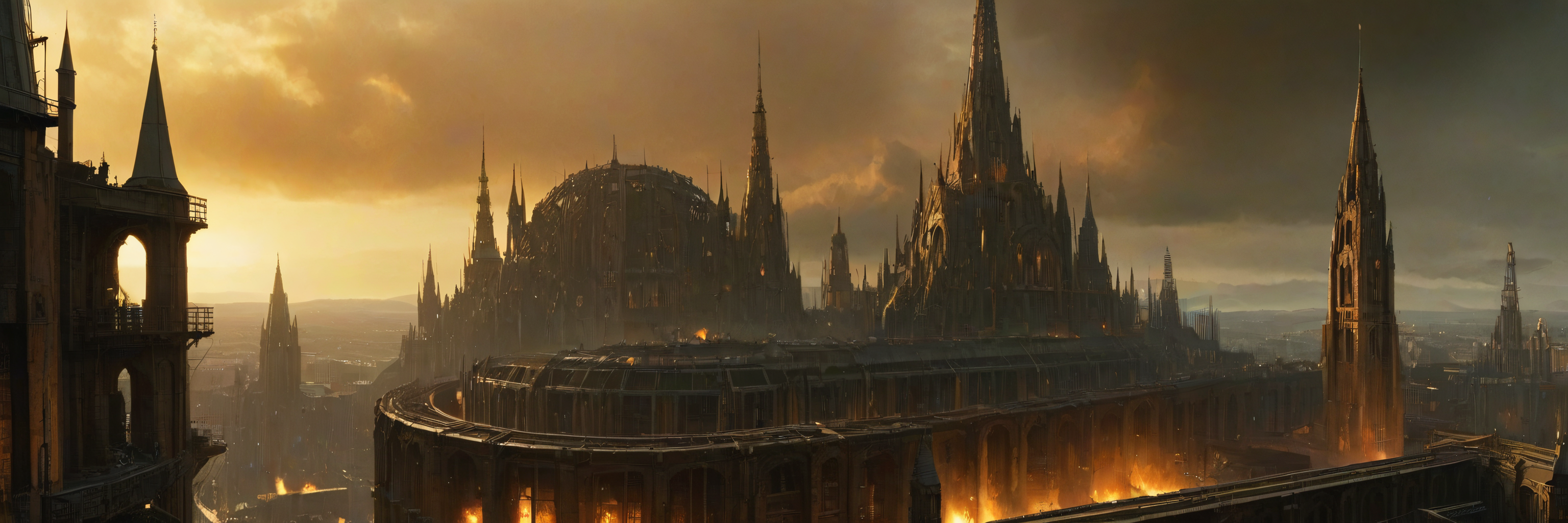 (warhammer 40k, wh40k10m, forge world:1.5, complex gothic architecture, industrial district:1.5, foundry:1.5, industrial chimney,:1.5, machinery,:1.5, gigantic Melting furnace:1.5, paths of molten iron:1.5, multiple layers of construction, layer after layer of architecture, spire towers, reaching the sky), gothic temple BREAK (symbolism, iconism, statue, heraldry, Imperium of Man location, The Aquila, two-headed eagle, cranes:1.5, industrial equipment:1.5, smelter:1.5), Brutalistic, Dystopian, grim, dark, thunder storm, thick smoke BREAK (view from orbit, gigantic,panorma, large scale:2) <lora:Wolvie_Concept_wh40k10m_v1.0:0.8>