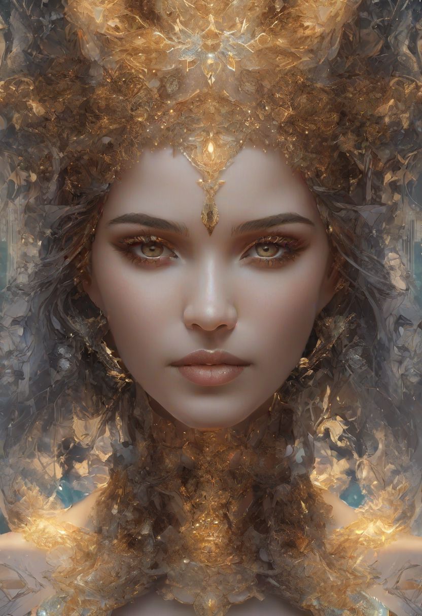 Woman made of flame fractal, oil painting, intricate complexity, rule of thirds, face by Artgerm, character concept, dramatic lighting, craig mullins, artbreeder, 8k, highly detailed and intricate, golden ratio, hypermaximalist, ornate, luxury, cinematic, octane, resolution beautifully detailed korea city trending on _artstation and p Woman made of flame fractal pattern 3d texture Woman made of flame fractal patterns, white and glossy, artstation --ar 3:4