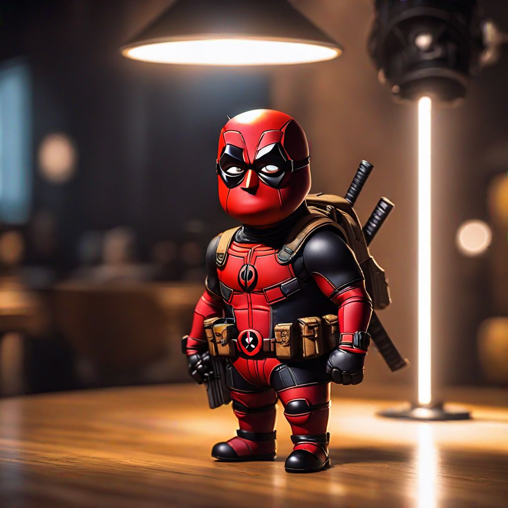 Minion in the spotlight, (wearing a Deadpool cosplay:1.2). Central figure, distinct mimicry, Photorealistic, Hyperrealistic, Hyperdetailed, analog style, soft lighting, subsurface scattering, realistic, heavy shadow, masterpiece, best quality, ultra realistic, 8k, golden ratio, Intricate, High Detail, film photography, soft focus
