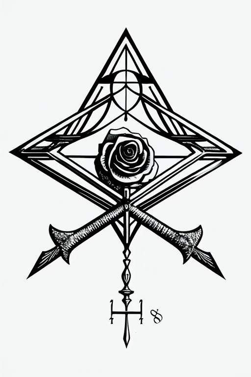 rose, cross, (magic key, Eye of Providence, astrolabe, cross, masonic symbols:0.6), (diagram, sigil, astrology:0.8), (illustration, scheme, magic, occultism:0.8), simple white background, (art deco:0.8)