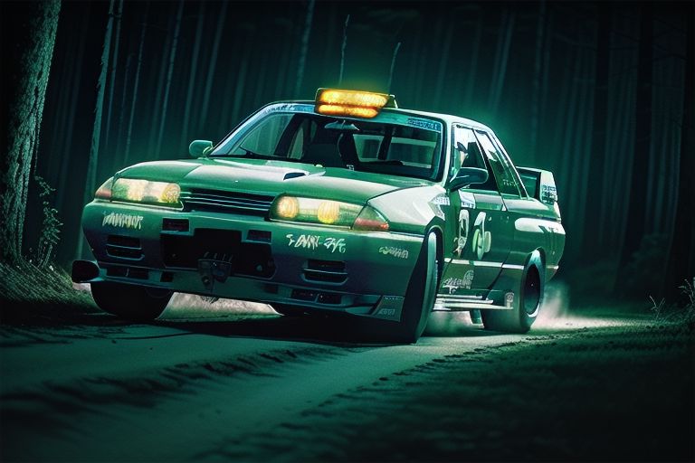 Highly detailed, Beautifully nightmarish kandagawa forest touge at night.