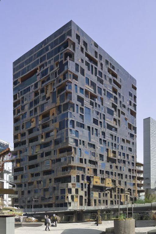 a building, modern architecture, Residential buildings, office buildings, shopping malls, hotels, CircuitBoard, (intricate details, masterpiece, best quality:1.4), extremely dramatic lighting with deep shadows, wide angle view, [:marble|granite|lbrick|tile|metal|concrete|glass|foliage_material texture:0.7], (real landscape:1.1), (blurred background:1.0), [buildings|trees|Crowd|buildings|trees|Crowd|buildings|trees|Crowd:0.7], (background, more_details:0.3) void, fair-face concrete, concrete, architecture, Isometric projection, stacked