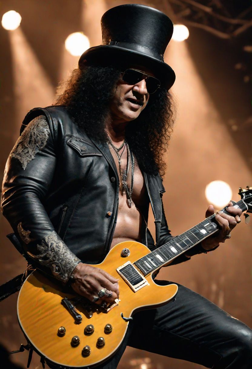 Slash playing with the guitar Portrait, High quality, realistic, HD, 8K