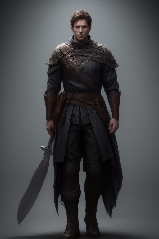 Character design, full body, 40 years old man, glass, slender, ghost, tall body, dark knight, nihilistic, white skin, long Indigo hair, blue iris, medieval fantasy, adventurer clothes, has a big sword, good looking, no bread, white background, best Quality