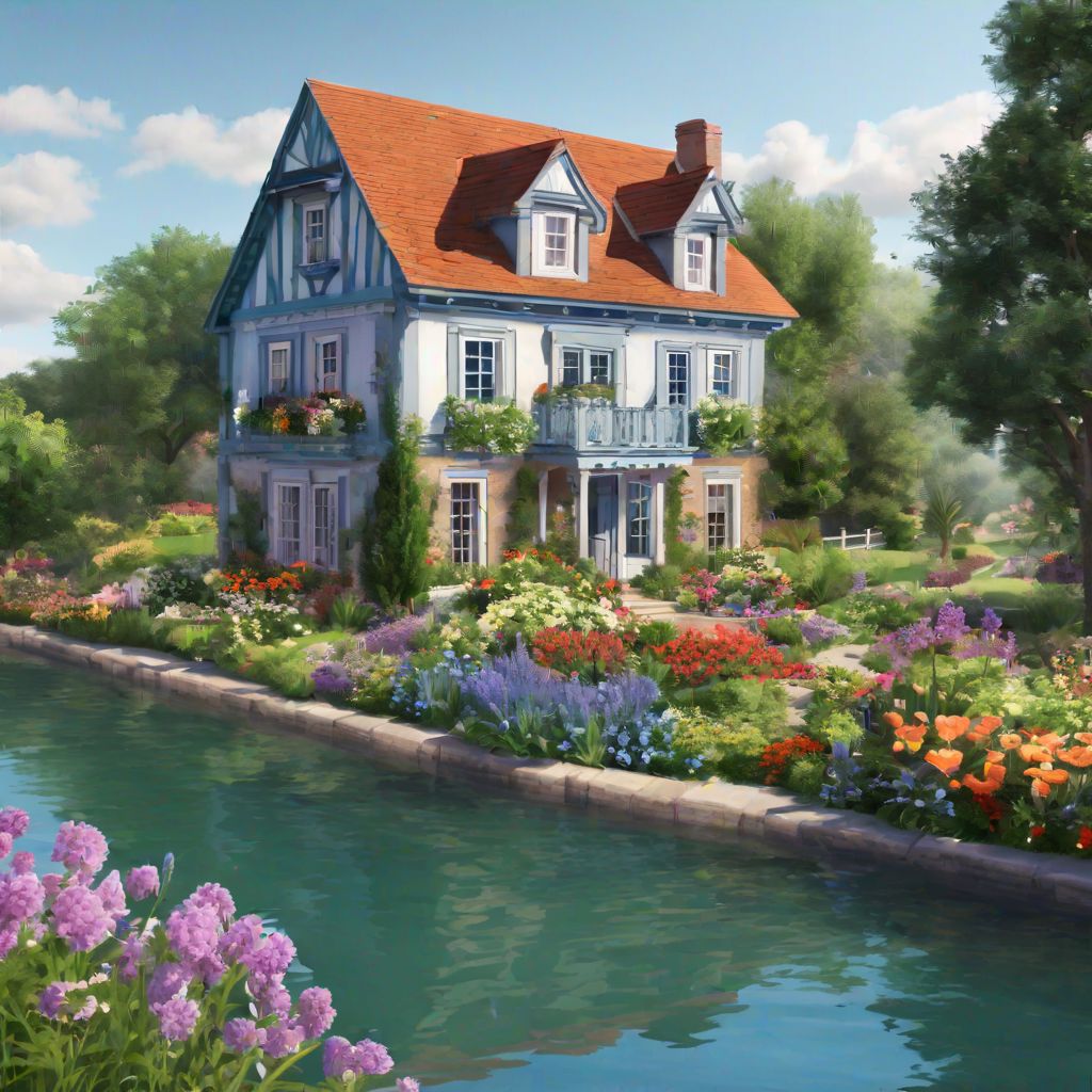 A beautiful house in side of a river and flower garden
