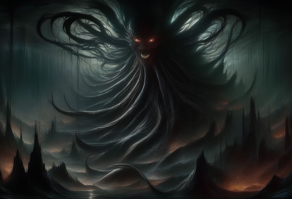 Eldritch horror Fusion of Cthulu and Godzilla, Massive tentacles hanging from lower jaw, tentacles from jar throwing objects, godzilla shaped face, bigger than buildings, showing full body towering over destroyed city, giagantic kaiju, Cthulu and Godzilla fused together attacking a city, humungous eldritch horror beyond comprehension, collapsing buildings, trail of cyberpunk city destruction, fear, horror, terrifying, tentacles coming off of face, open maw, jagged teeth, roaring, godzilla fused with cthulu, epic monster destroying a city full body, perfect eyes, extremely detailed, highest quality, hyper realistic style art, award winning masterpiece artstation (detailed dirty skin:1.3) shiny, (epic destroyed cyberpunk cityscape background :1.2) , hard light, sharp focus on eyes, low saturation, high contrast, defiant and seductive, colorful polychromatic, ultra detailed, ultra quality, Cinematic Lighting, dynamic neon cyberpunk lighting, intricate, smooth, sharp focus photography, Asymmetrical Balance, hyperdetailed , dynamic lighting, complex, head and full body, 8k resolution, monster gas arms, monster has large grotesque tentacles growing off of face, monster has large godzilla style spikey dorsal plates along spine and tail, monster is grotesque biopunk fusion of godzilla and cthule with mechanical cyberpunk components fused into flesh