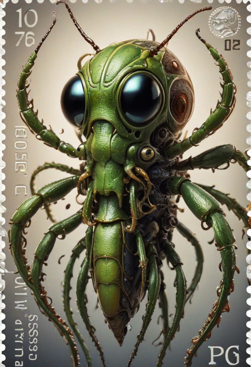 (genetic modification of humanoid with grasshopper:1.7), (tentacles body and neck:1.5), dirty liquid tentacles, huge bee eyes, whole figure, Centered-Shot, gothic, photorealistic, intricate, high detailed, volumetric lighting, cinematic lighting, 8k, octane render, lazy, abstract, ((uniform light background, matte background:1.4)), (picture in the form of a postage stamp:1.6)