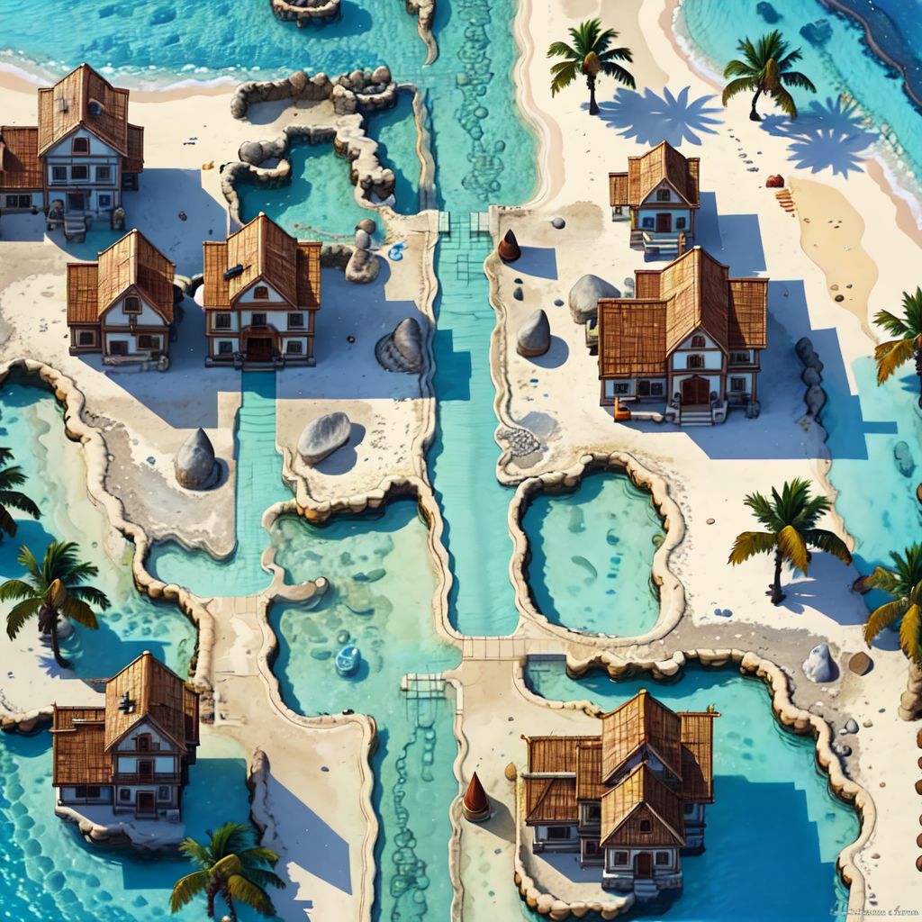 <lora:2D游æåºæ¯_å¤å¶:1> a sunny tropical island, sandy beaches, palm trees
