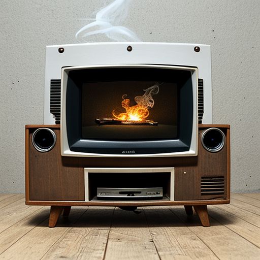 old vintage television set smoking and leaking fluid