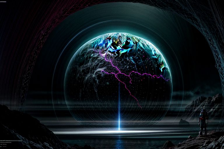 piercing light, (aesthetics:1.1), (low colors:1.2), BREAK, <lora:-_SDXL_-_holo_effect_V1.0:1>, A futuristic epic disaster scene of Earth sinking into another planet made of translucent materials, and its internal structure is clearly visible, including magma spills and light-emitting explosions. its precise construction and possible geostructure. High tech and futuristic holographic planet body scan, bioluminescence, fiber optics, masterpieces, octane rendering, unreal engine, , intricate details, UHDR, 32K,