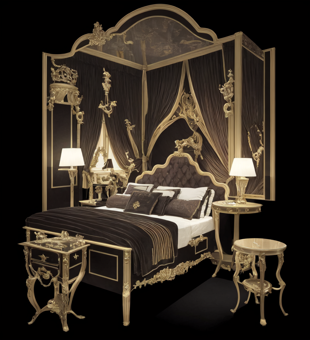 (Award Winning Photo:1.3) of (Illustration:1.3),(Amusing:1.3) luxury furniture, bedroom, framed, solo,(by Artist Adi Granov:0.3),Highly Detailed,(Aestheticism:0.45),(CineColor:1.3)
