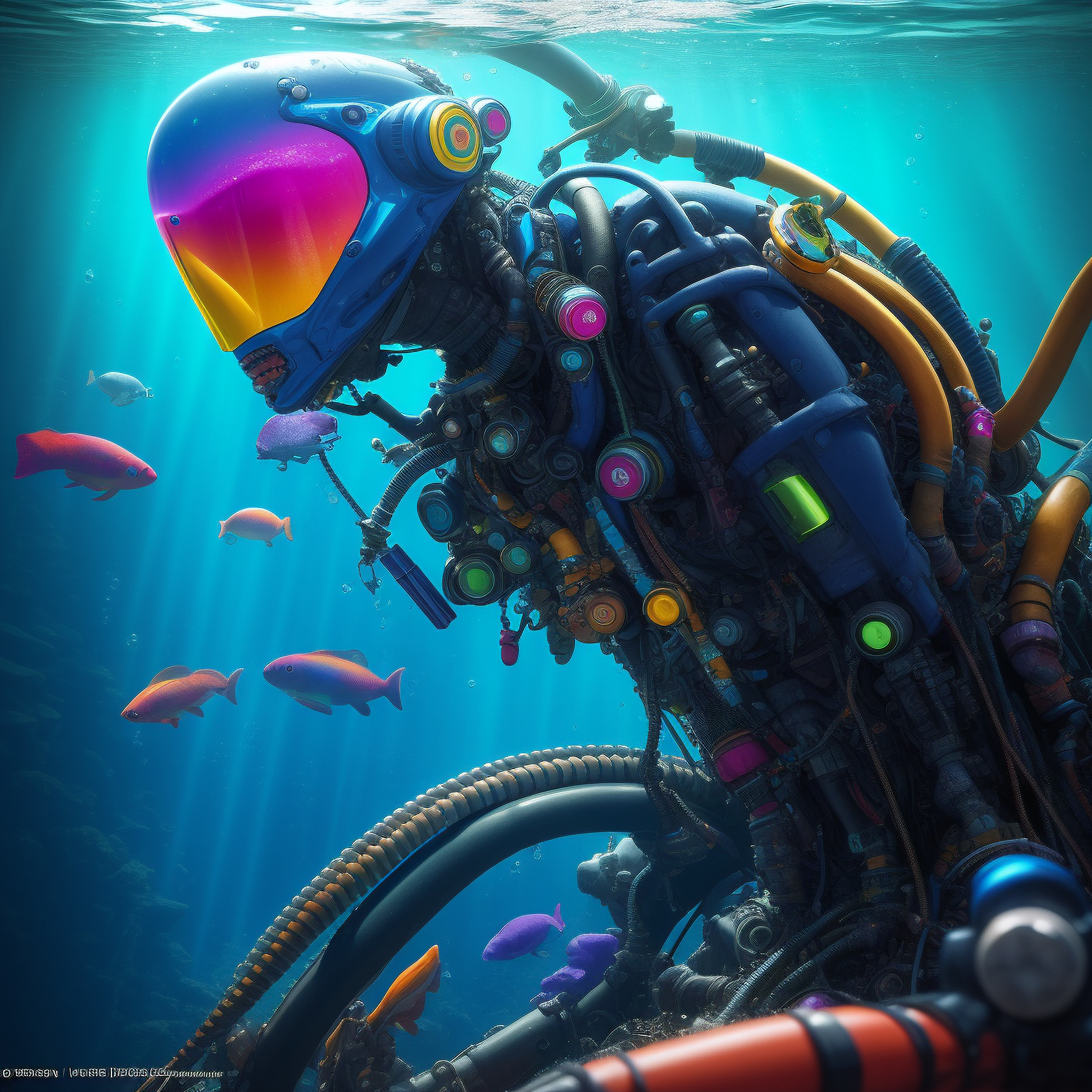 colorful, close up, close-up, underwater vehicle, vehicle under water, vehicle, bizarre vehicle, transportation, hydro, hydropunk, sea, ocean, coral, coral cliff, wet, watery, water, wet look, soggy, glistening, shiny, reflections, water reflections, very detailed, hyper detailed, futuristic, reflection, lens glare, epic, cinematic, colorful, best contrast, great contrast, 3d render, top quality, best quality, IMAX quality, high resolution, highres, 4k, 8k