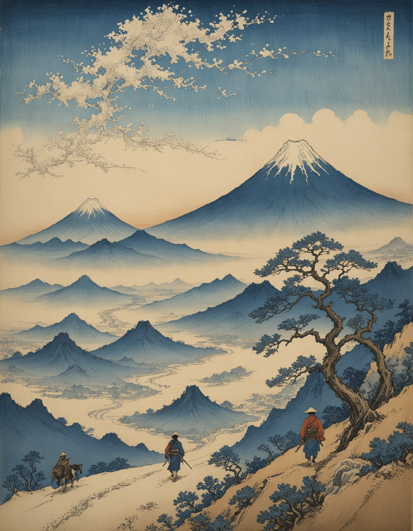 (by Katsushika Hokusai:1.5), (Across barren plains and distant horizons, a Nomadic tribe wanders, their journey guided by the rhythm of the seasons and the call of the wild.:0.5) ([Wild West style|Urban realism]:1.3)