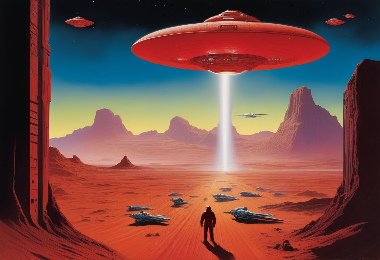 illustration for the cover of the of science fiction storie "Red Sun" from Clifford Simak, high resolution, high detail, bright lighting, digital painting